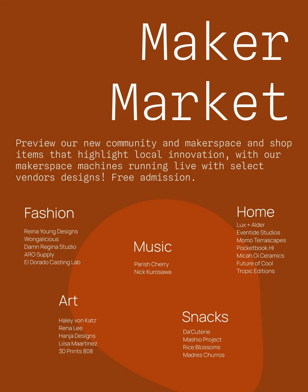OurSpace Alley party Saturday, February 21, 2026 2:00 PM 6:00 PM OurSpace 1052 Waimanu Street Honolulu, HI, 96814 United States (map) Google Calendar ICS